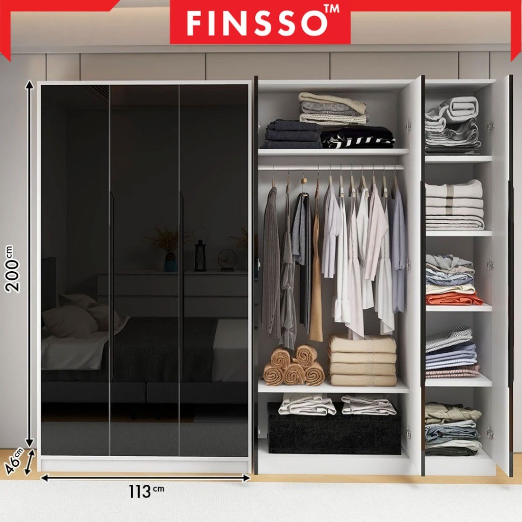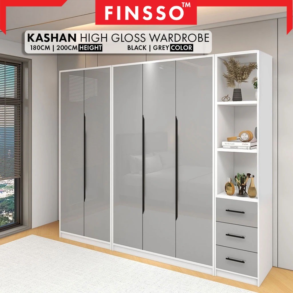 Almari Baju Glossy + Papan 1.5cm Tebal Upgraded Quality | Large 3 Door Wardrobe | Kashan 200 X 113 X 46 CM