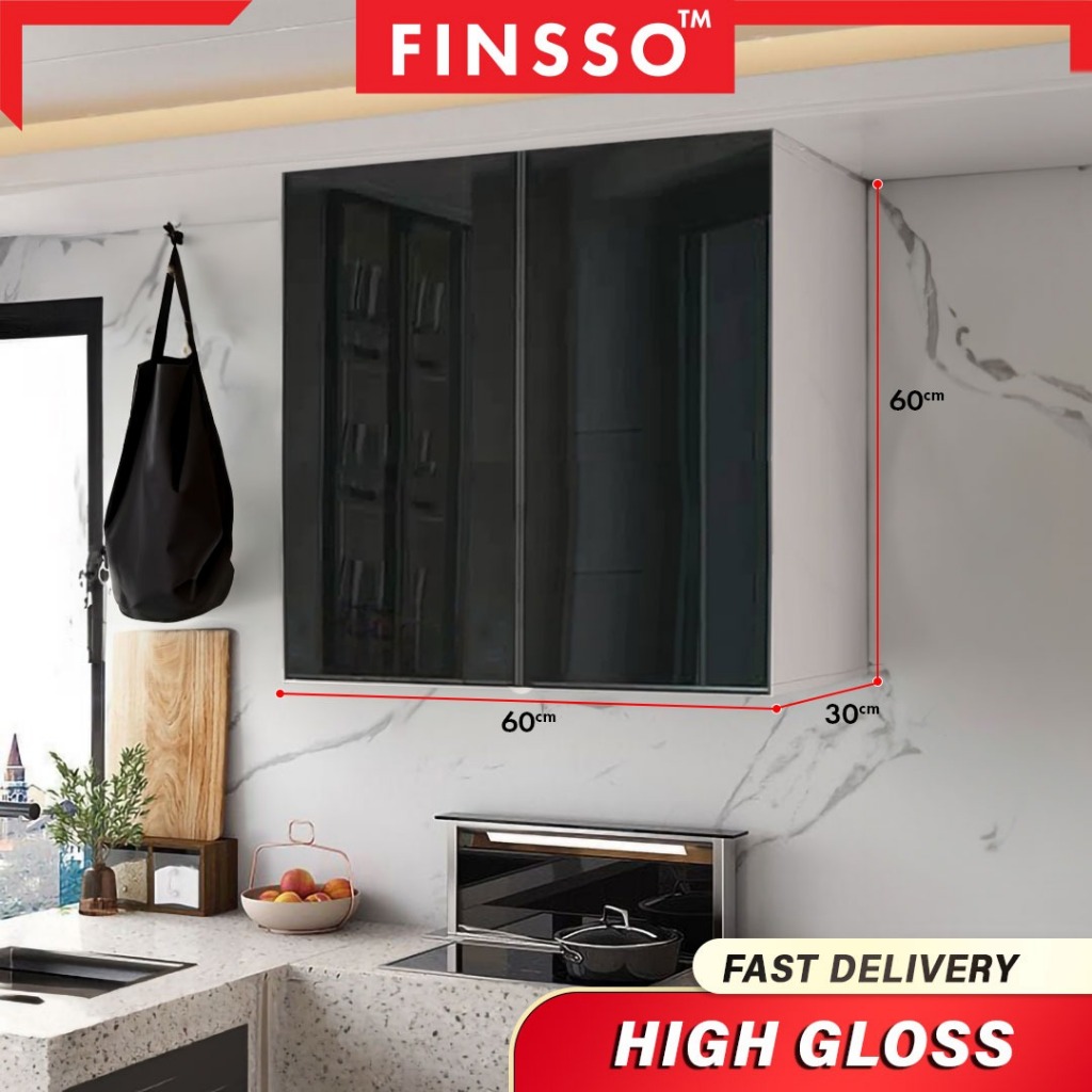 30cm High Gloss Kitchen Cabinet with Waterproof Surface with Shelves/ Kitchen Wall Rack / kabinet dapur gantung