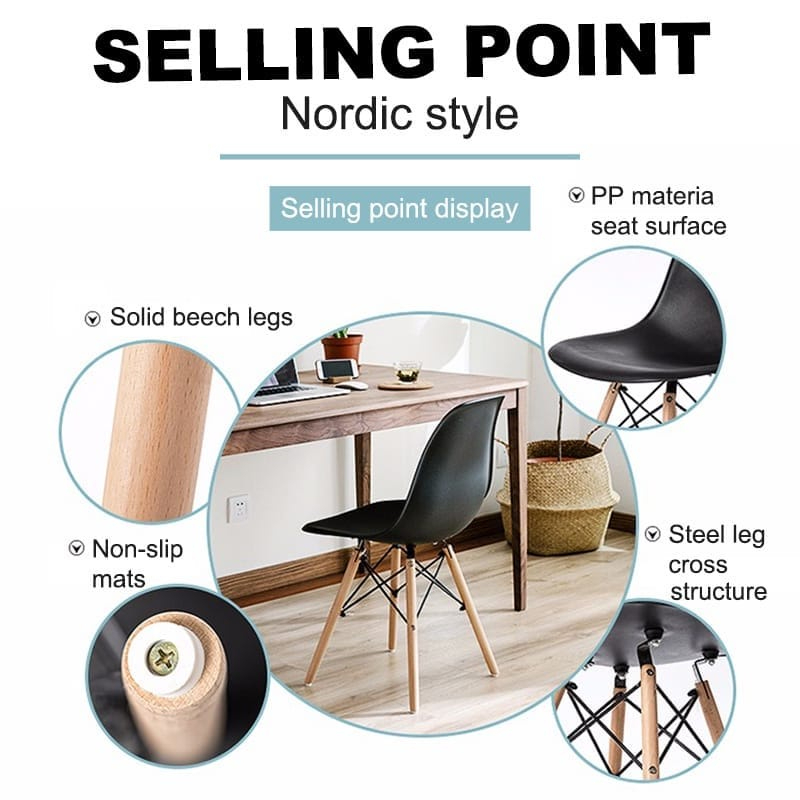 Eames Dining Room Chair / Kerusi Makan / Kerusi Belajar / Ergonomic Chair / 4 Kerusi Makan / Kerusi Meka Makan