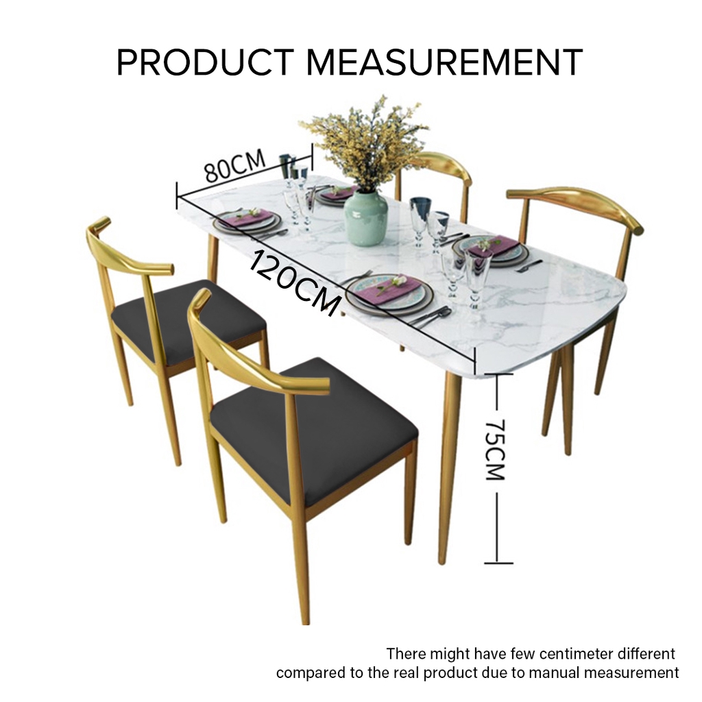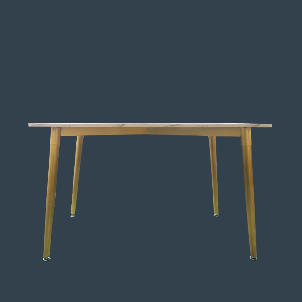 Eames Wooden Table with Marble Texture Table Top Gold Metal Frame Dining Set / 1 Table + 4 Chairs