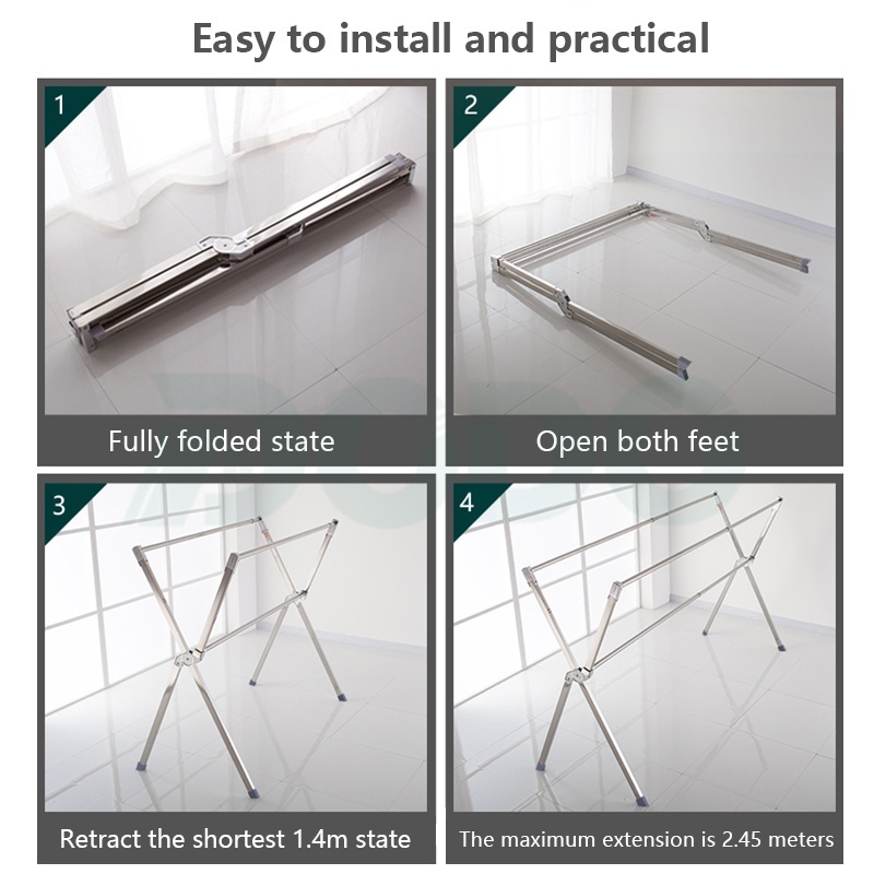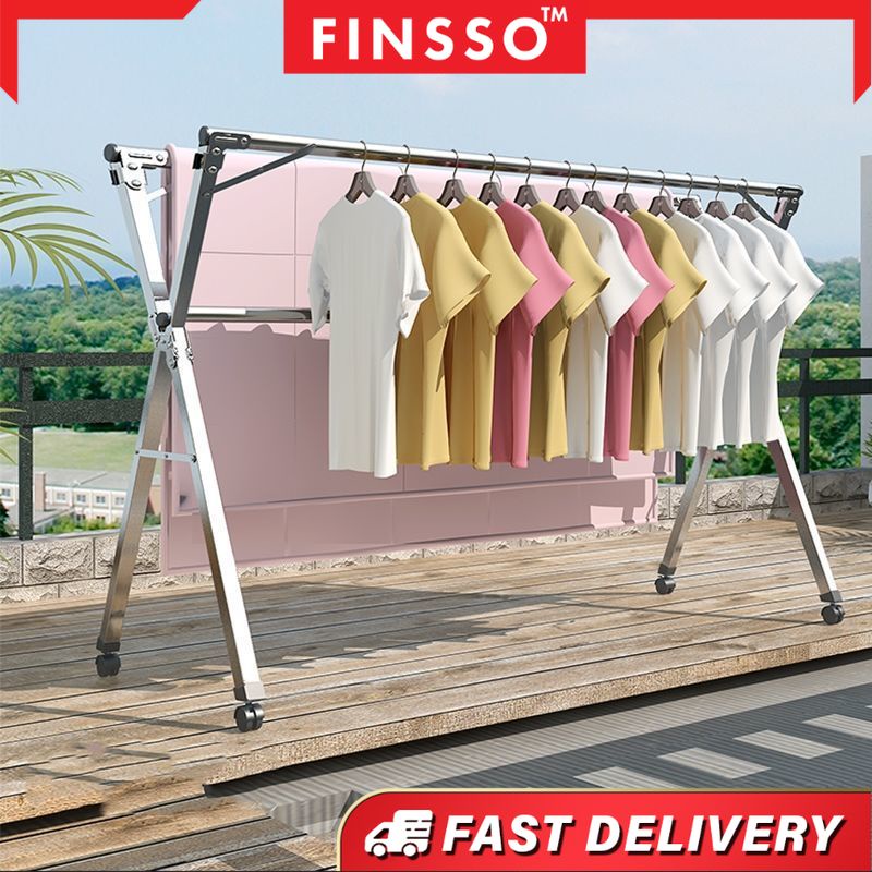 Foldable Mobility Stainless Steel hanging rack / Clothing Drying Rack /Rak Baju Laundry Rack
