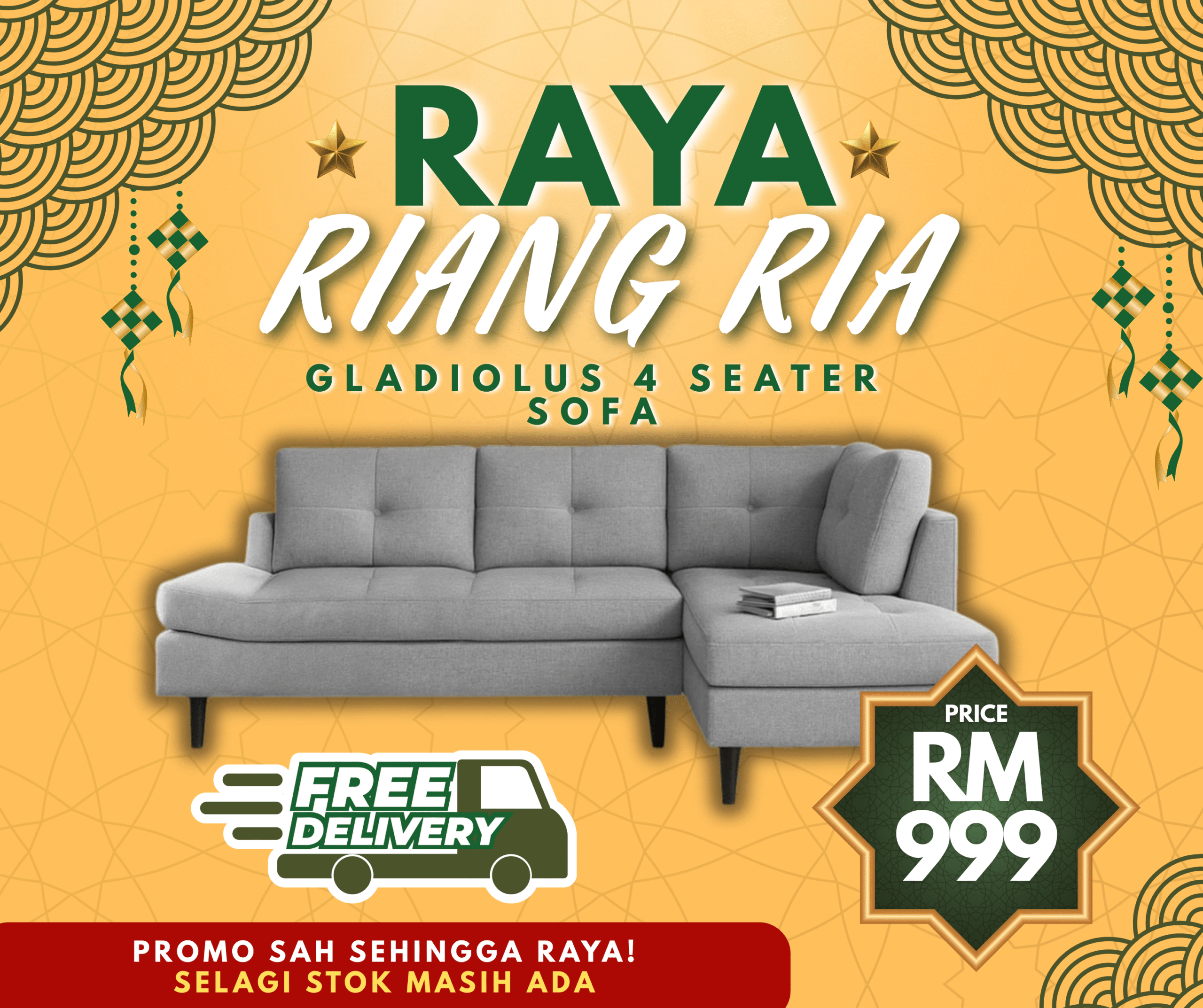 [FREE SHIPPING] Gladiolus Premium L-Shape Sofa with Chaise – Modern 4-Seater Comfort & Style