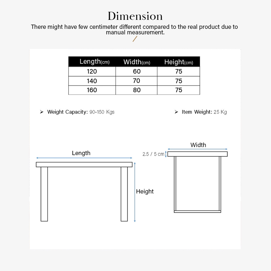 2.5cm or 5cm (pre-order)Thick Table Top able to choose
