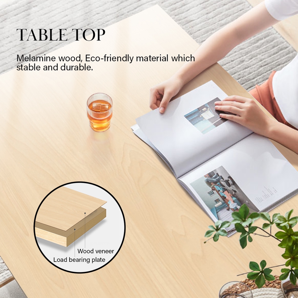 Uses 1.6 cm thick Particle Board as wooden top table.