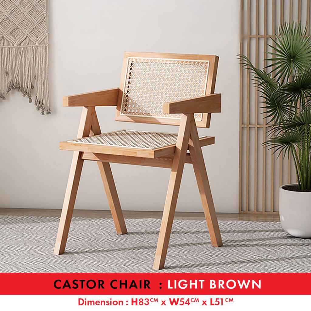 Solid Wood Rattan Chair | Dining Chair | Armchair Nordic Style | Kerusi Kayu Rotan Castor | Kerusi Makan