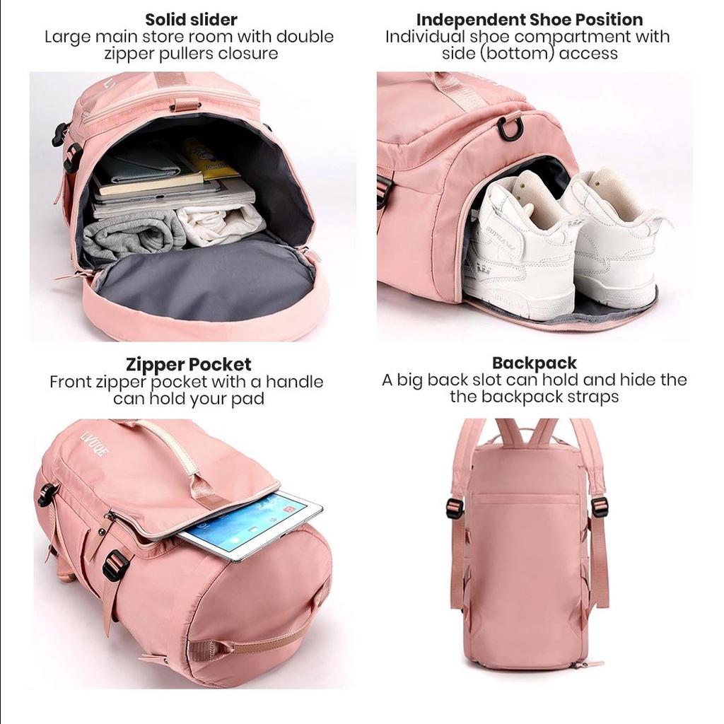 Product Features: • Waterproof nylon oxford material • Large storage capacity • Wet and dry area separation • Multiple ways to carry • Strong and durable • Water resistant